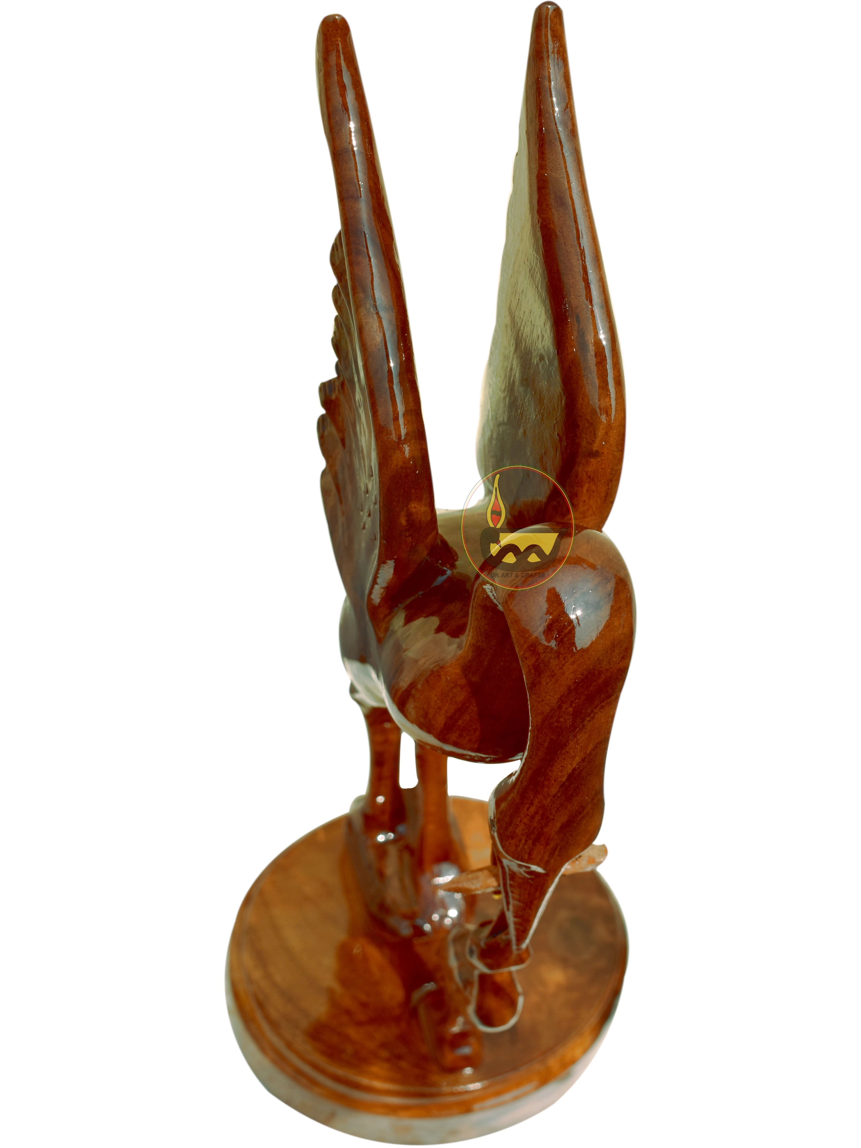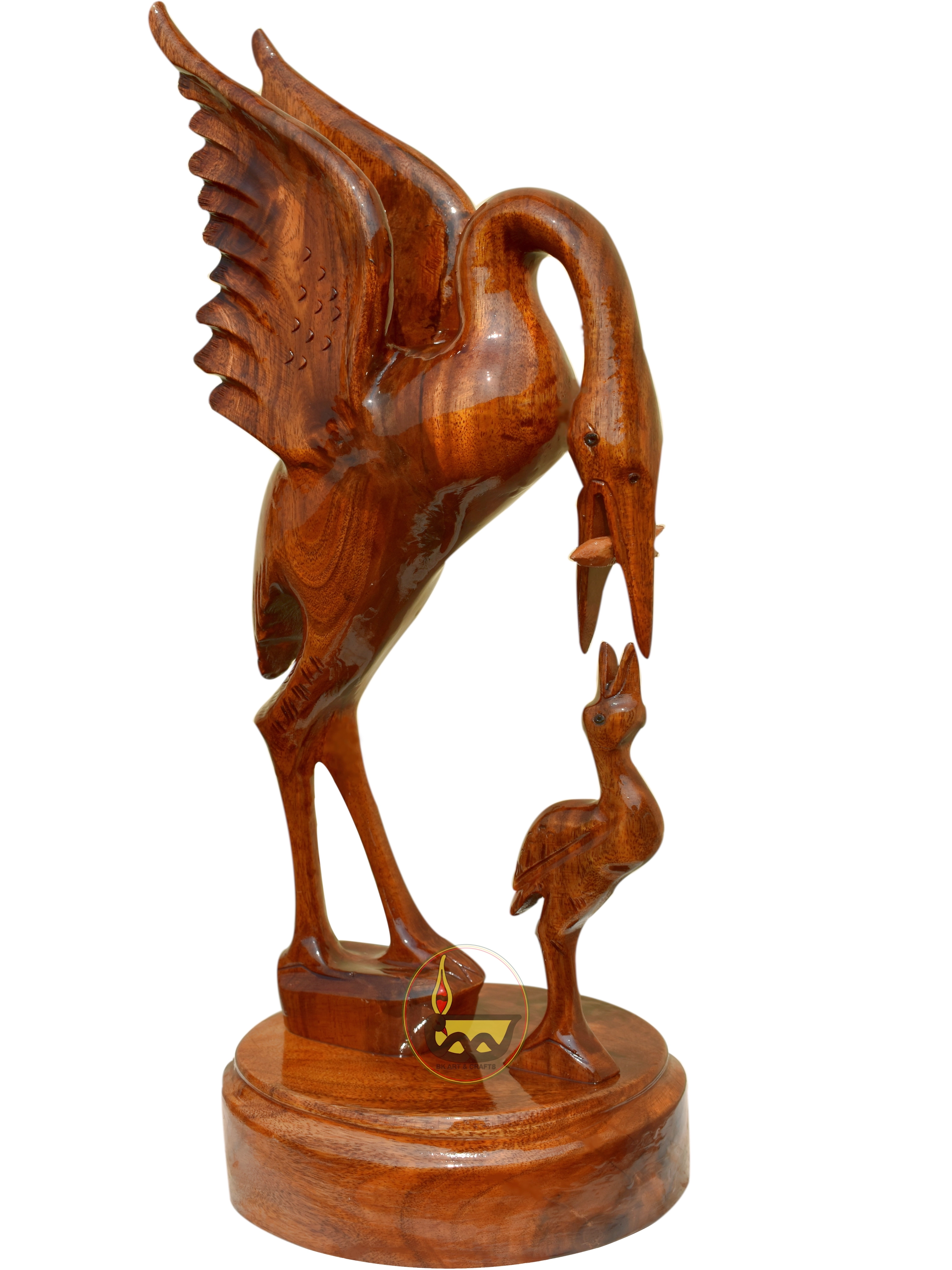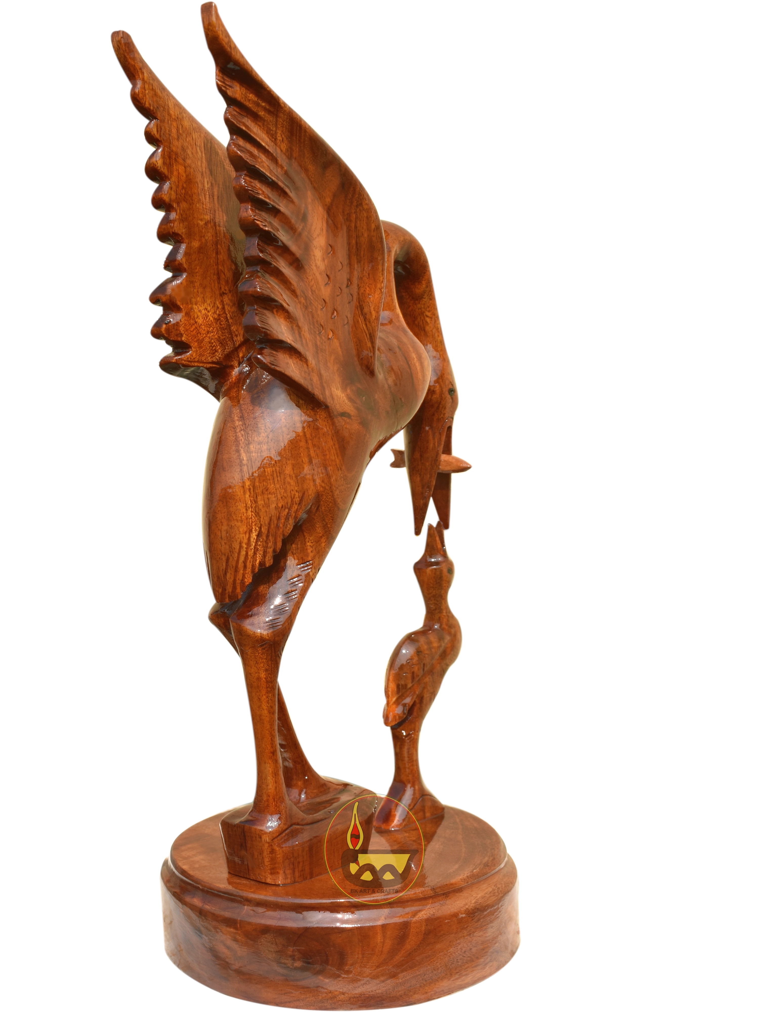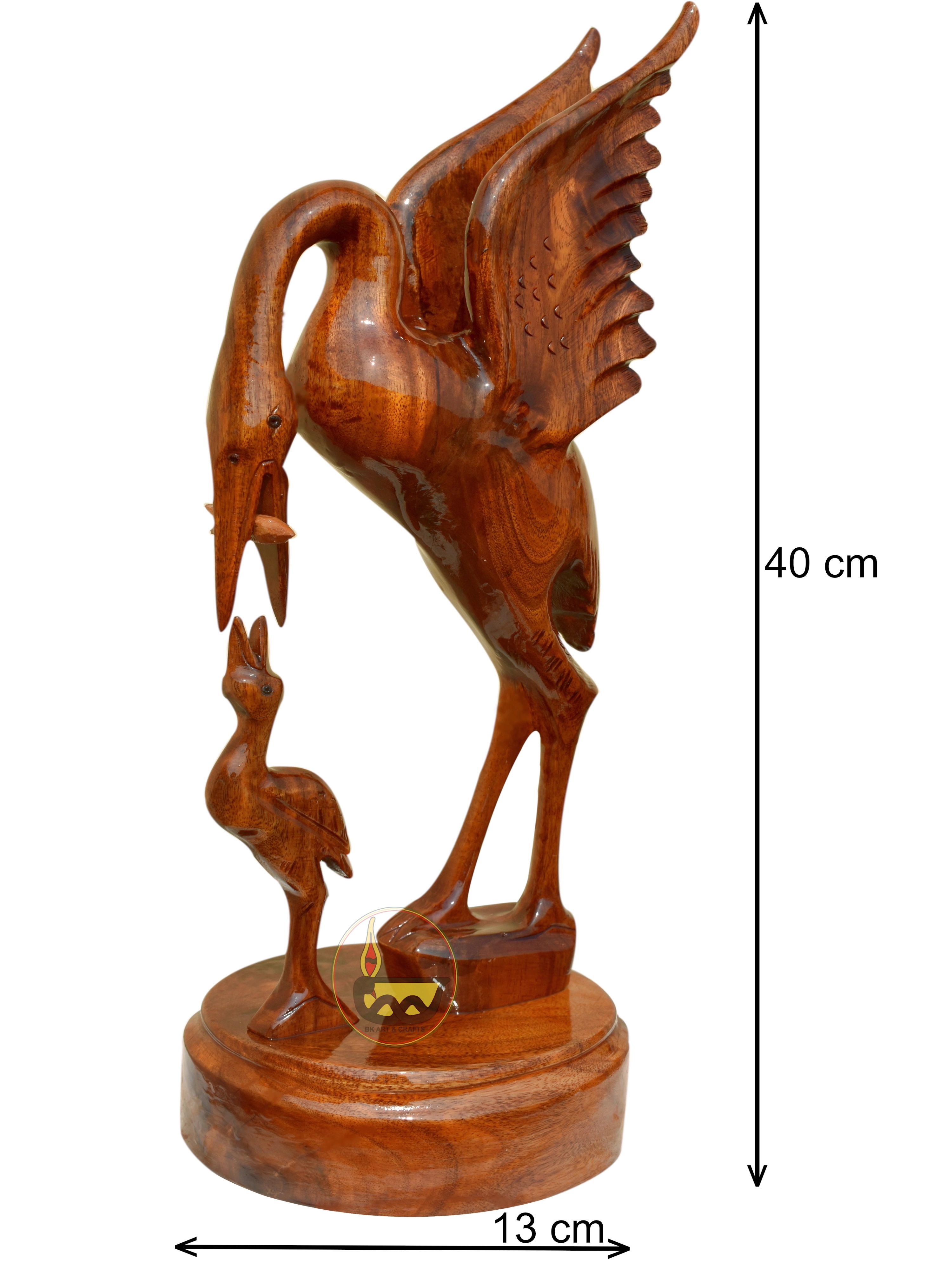 Wooden, hand-made, heron or crane, 40cm, up wings, brown colour, pack of 1, for table or rack decoration (for Living-room, Bed-room, Office).